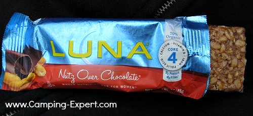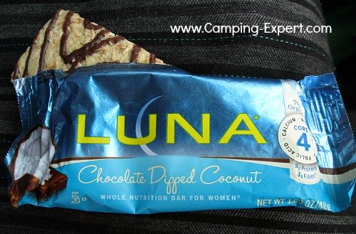 Clif Bars are common camping nutrition bars. They have alot of carbs for the amount of calories, but this is good for hiking and energy.